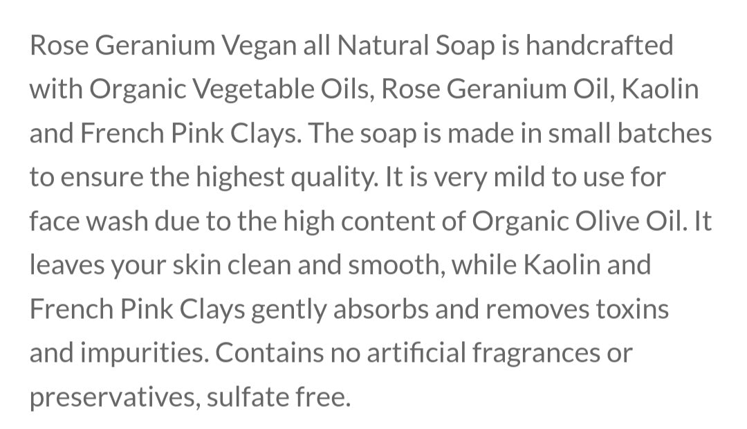Specialty made high quality vegan soap. Handcrafted in small quality assuring batches, with all natural active ingredients and organic vegetable oil. No sulfates. No preservatives. No artificial fragrances. Lathers well. Moisturising.
